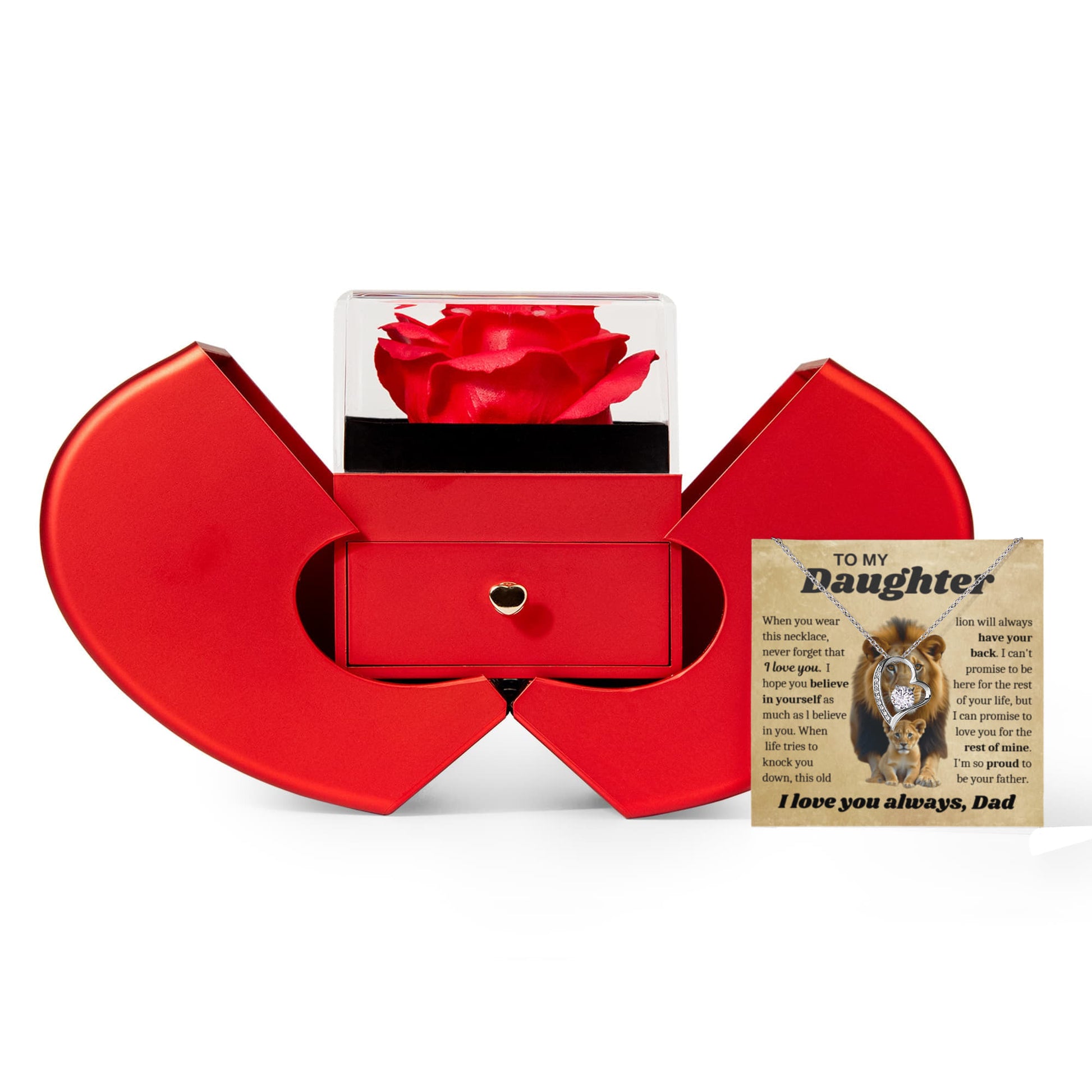 To My Daughter Necklace from Dad - Love Heart Necklace - Eternal Rose Gift Box