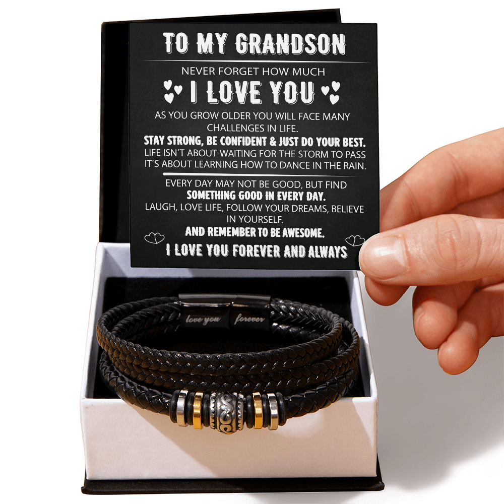 To My Grandson - Love You Forever Bracelet - Always With You Message Card Gift BLK