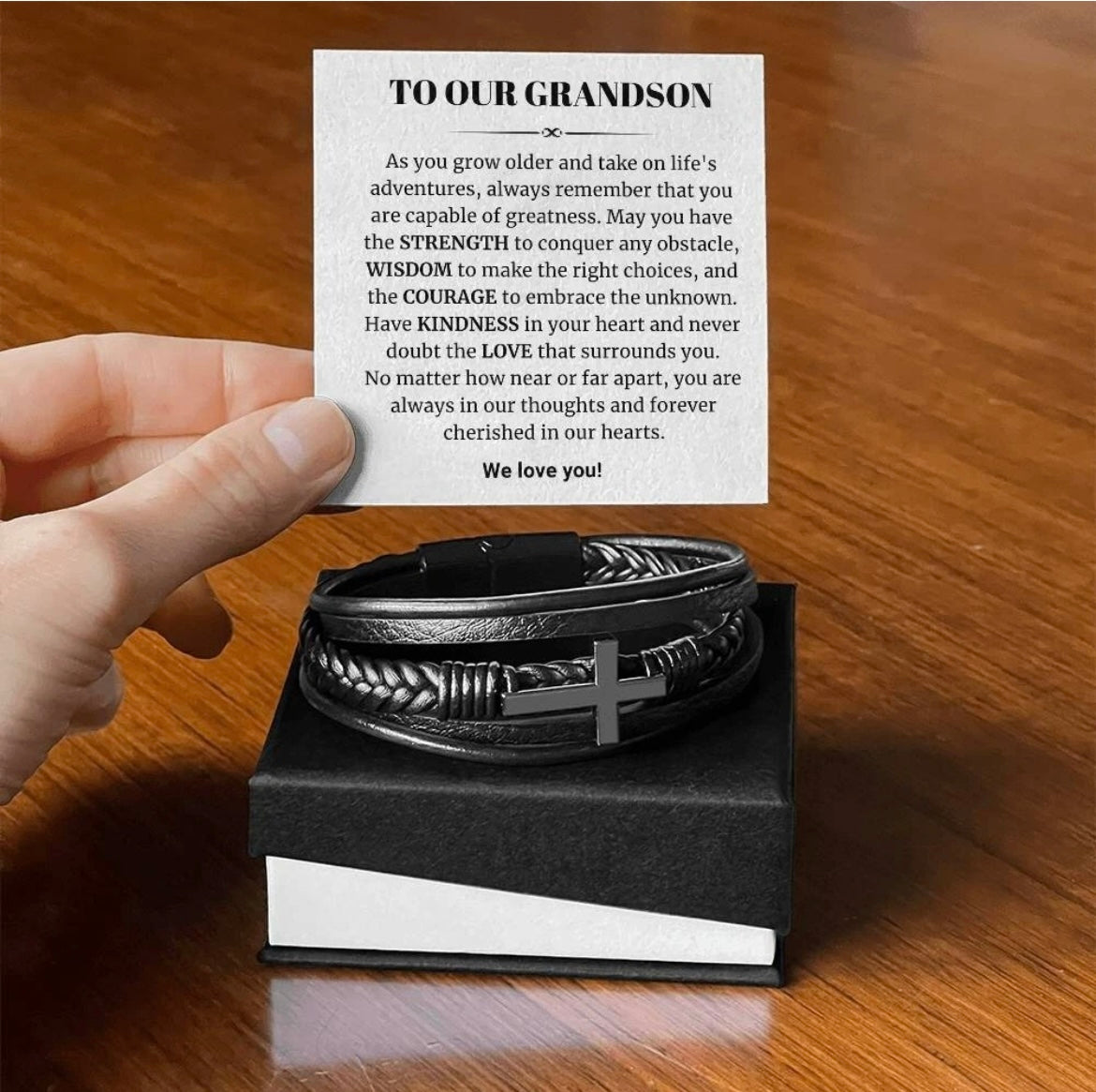To Our Grandson - Cross Bracelet - Cherished In Our Hearts